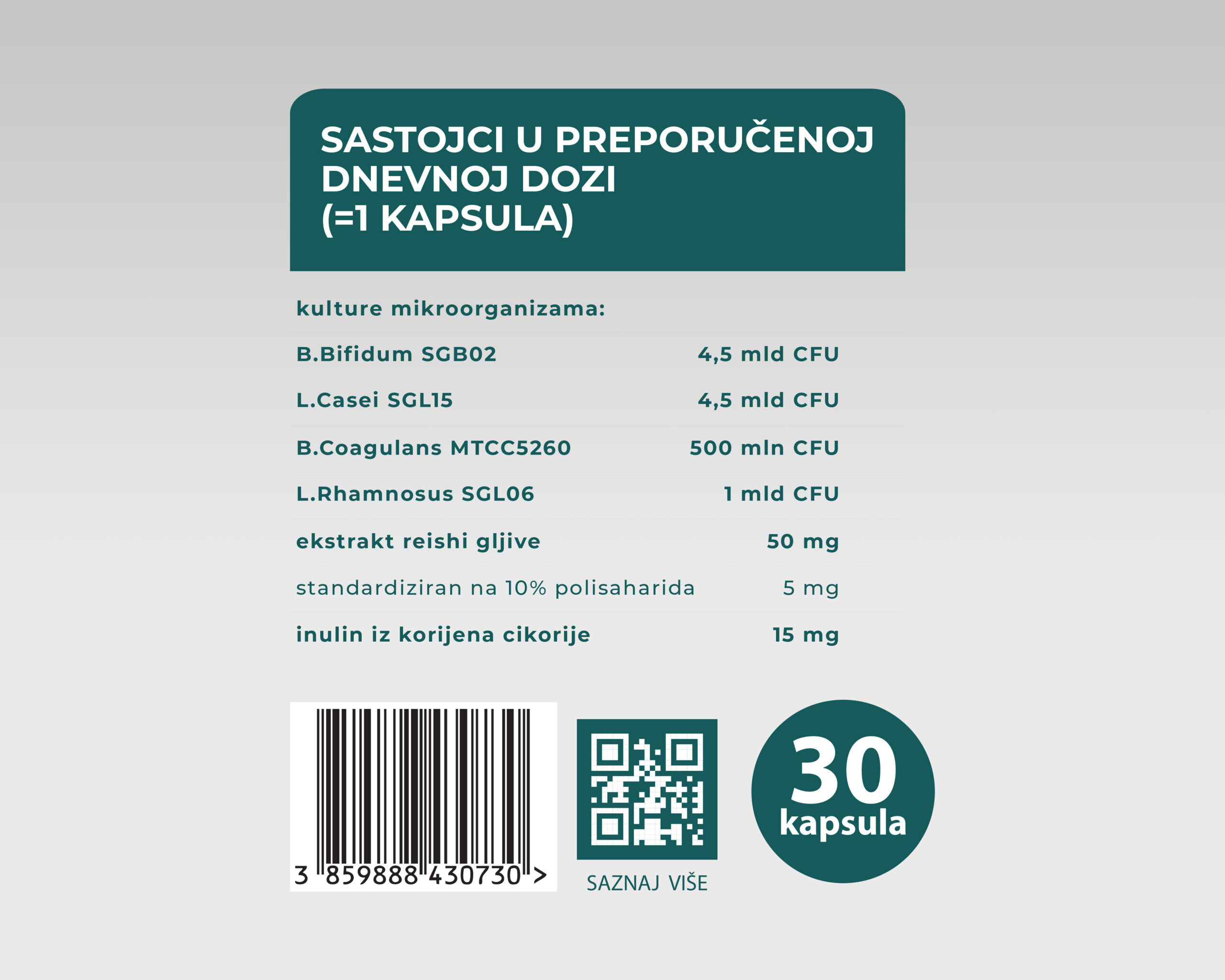 • Lactobacillus casei SGL15 4,5 milijardi CFU